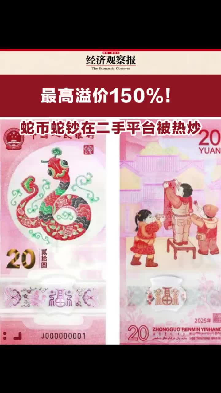 12月23日晚上10点,蛇年纪念币、钞开启预约,你抢到了吗?目前在二手交易平台,一套“蛇币”售价在310到500元不等,而“蛇钞”的价格基本在800到1000元,最高溢价率均为150%。有邮币收藏人士表示,现阶段来说,“蛇钞”“蛇币”是有收藏价值的,但邮币收藏市场日趋冷淡也是事实。他建议购买纪念币、钞还是以纪念价值为主,如果是为了投资,那么意义不大。 (via 经济观察报视频)