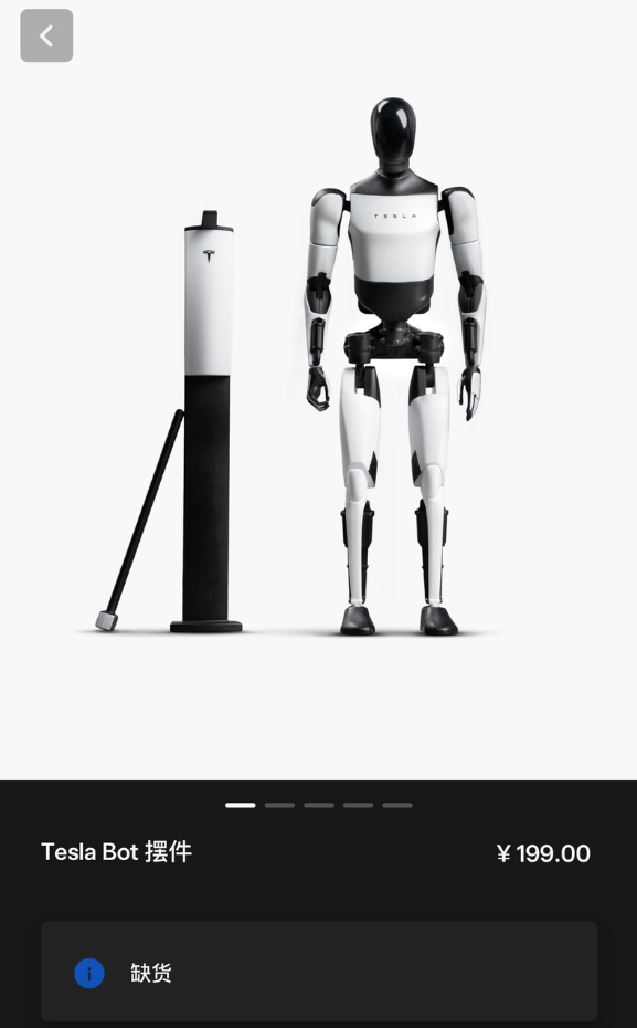 据蓝鲸新闻,特斯拉又一款周边产品遭抢购。12月26日上午10时,特斯拉TeslaBot人形机器人摆件正式对外发售,定价为199元。不过,仅不到15分钟时间,在其官方APP、第三方电商平台官方旗舰店上看到,这款产品均宣告售罄,显示“缺货”“下架”状态。在某第三方电商平台特斯拉官方旗舰店上,该摆件显示已售100+。其客服人员表示,确实被抢光了。对于后续还会否上架,其称,目前没有收到补货通知,建议后续关注下。