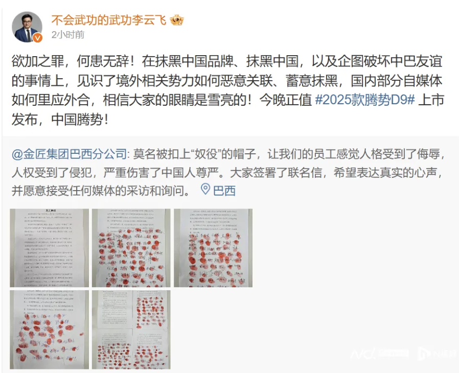 巴西工厂施工方“奴役”员工?比亚迪李云飞:欲加之罪,何患无辞。
