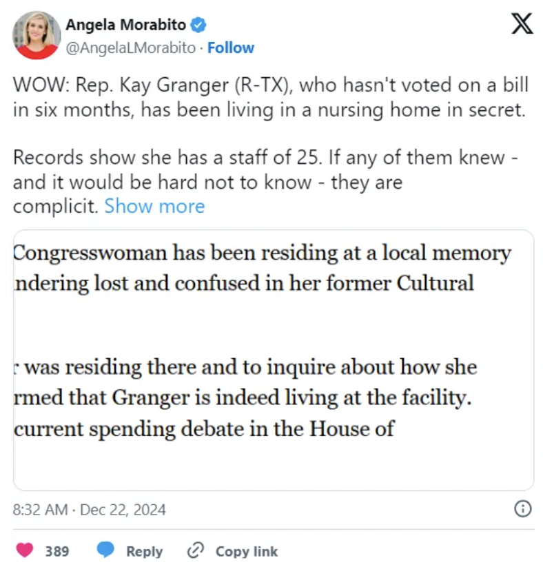 这意味着,尽管她仍然是在职的国会议员,但其实早已无法正常履职。而且更加恶劣的是,在过去几个月里,她的助手和家人很可能刻意对公众隐瞒了这一事实。