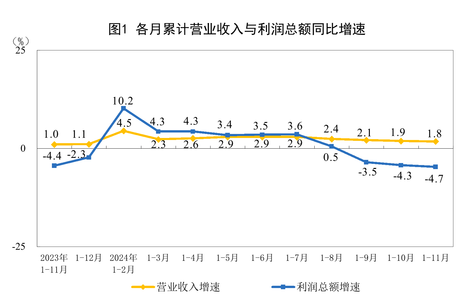 国家统计局:1—11月份全国规模以上工业企业利润同比下降4.7%。