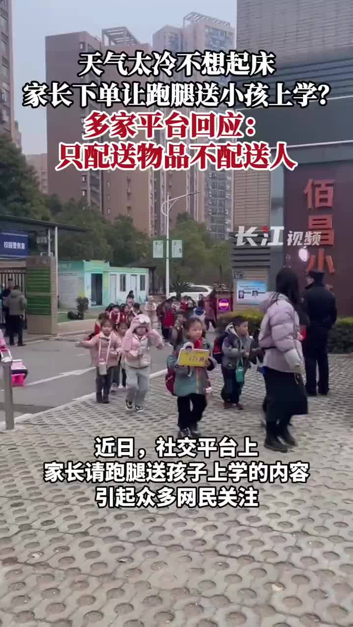 记者采访了多名家长,绝大多数都存在担忧。蜂鸟跑腿、达达秒送、顺丰同城、闪送平台的客服均表示:人不在可配送物品范围内。 (via 长江日报)