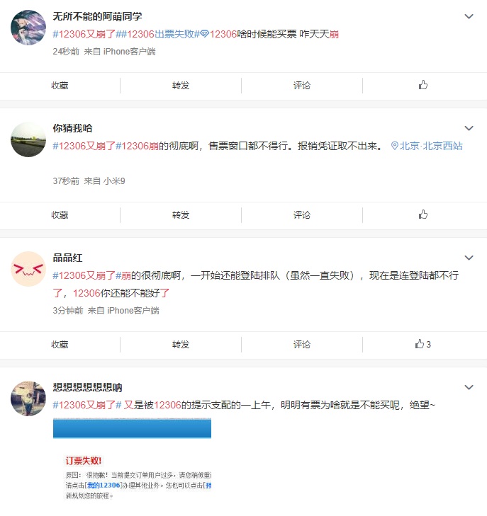 目前中国铁路 12306 官方尚未就此次崩溃作出回应。