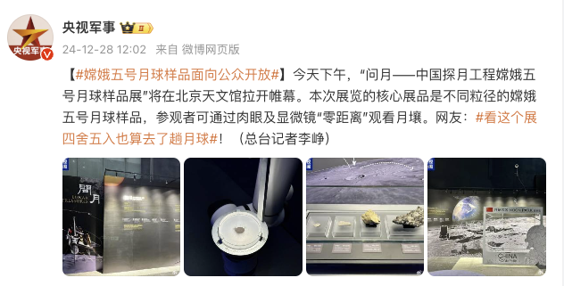 嫦娥五号月球样品面向公众开放。
