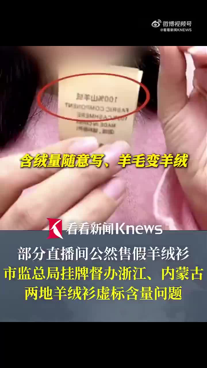 12月29日晚,总台央视《财经调查》栏目报道了鄂尔多斯市有关羊绒制品经营主体销售虚标羊绒含量服装的情况。一些商户从工厂进“白坯”贴牌,将原本羊绒含量极低的羊毛、羊绒混纺针织品打上100%山羊绒的水洗标,伪造检测报告,虚标羊绒含量。除此之外,还存在用“浣熊绒”冒充羊绒的现象,实际上“浣熊绒”也不是浣熊身上的绒,而是羊毛混兔毛。12月30日,内蒙古鄂尔多斯东胜区市场监管局发布情况通报,对相关违法企业采取了抽样检查、扣押等执法措施,针对涉嫌存在违法行为的企业,已立案调查。(via 看看新闻KNEWS)