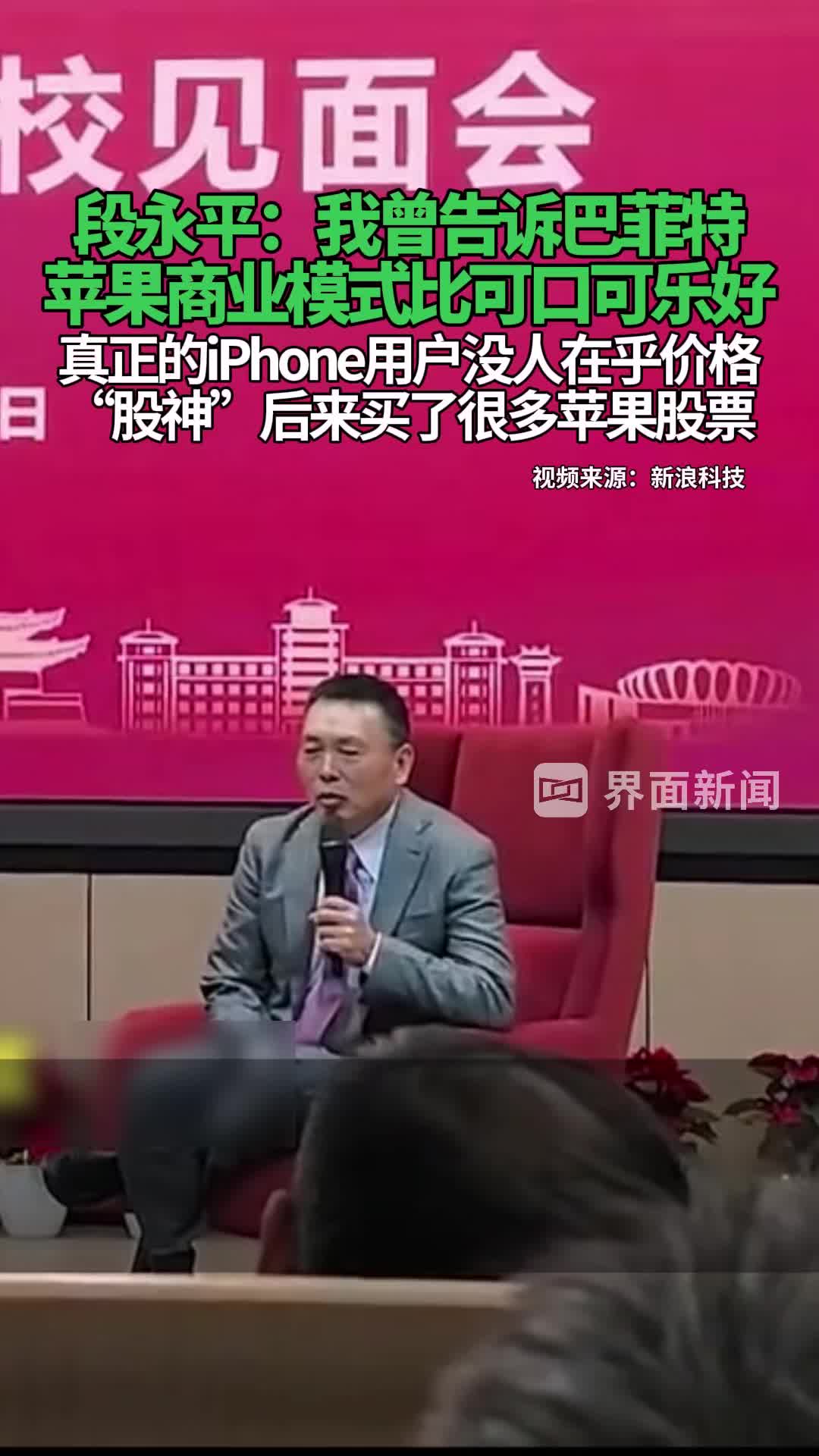 段永平:我曾告诉巴菲特苹果商业模式比可口可乐好,真正的iPhone用户没人在乎价格,“股神”后来买了很多苹果股票。