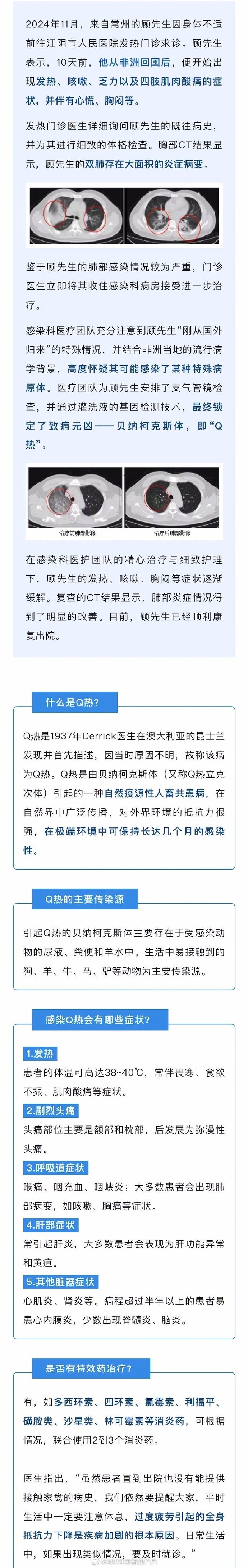 经过诊断,顾先生最终确诊为贝纳柯克斯体感染引起的急性传染病,即“Q热”。