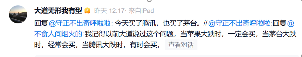 段永平则表示,买了腾讯,也买了茅台。