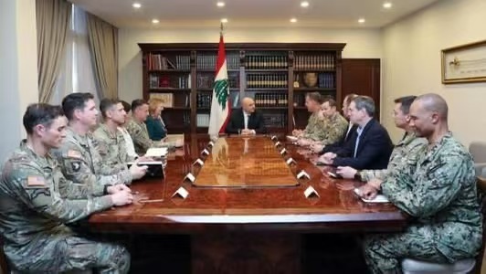 黎巴嫩总统会见美国军事代表团,黎以停火监督委员会主席参会。