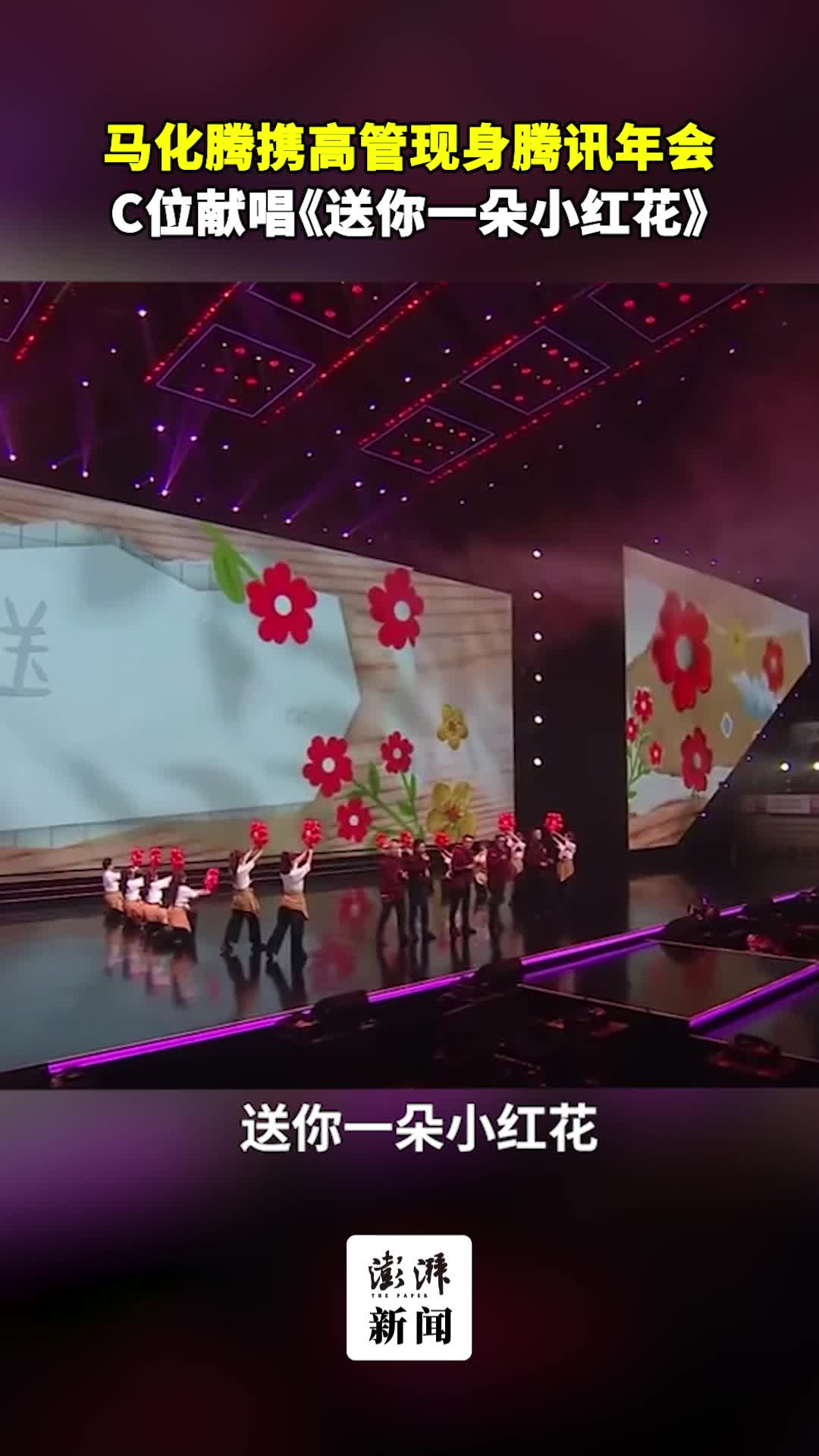 马化腾携高管现身腾讯年会,C位献唱《送你一朵小红花》。
