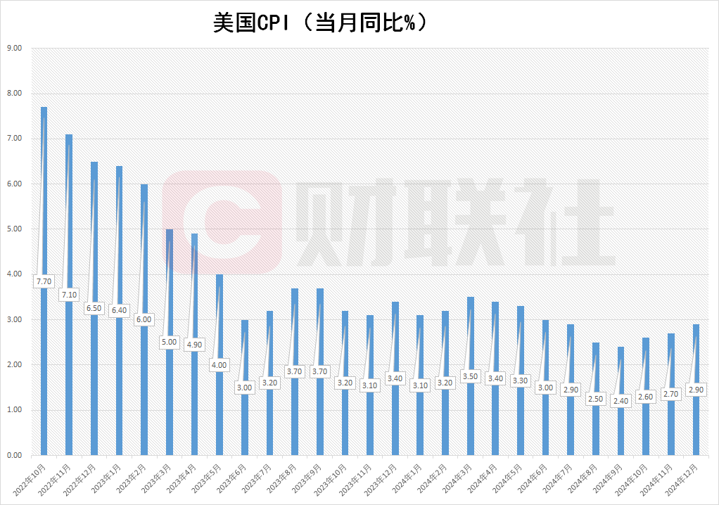美国12月CPI同比增长2.9%,符合市场预期。据财联社,美国12月CPI同比增长2.9%,预估为增长2.9%,前值为增长2.7%;12月CPI环比增长0.4%,预估为增长0.4%,前值为增长0.3%。