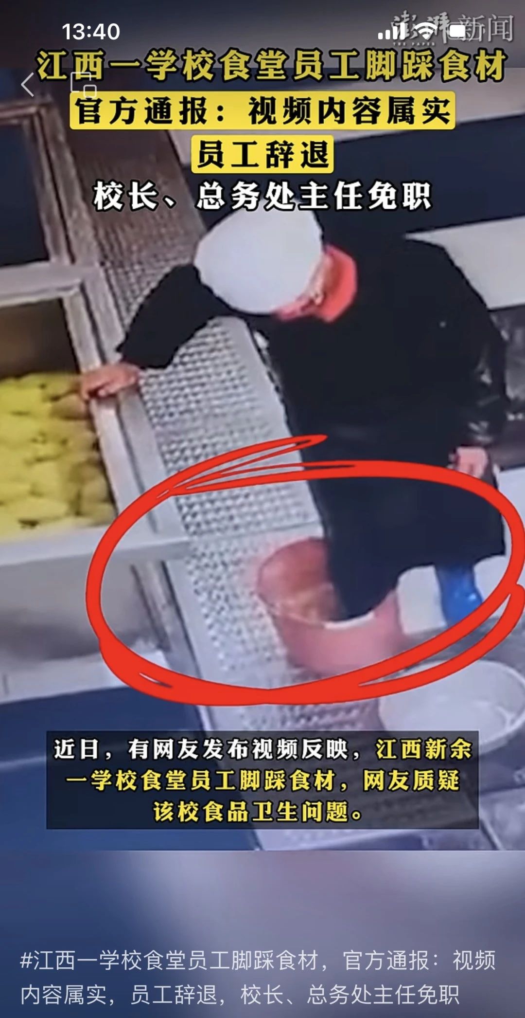 1月14日,有网民在网上发布信息称:“新余十六中食堂存在食品卫生问题”。江西渝水区教体局会同相关部门到现场进行调查处理。经核查,视频内容属实。