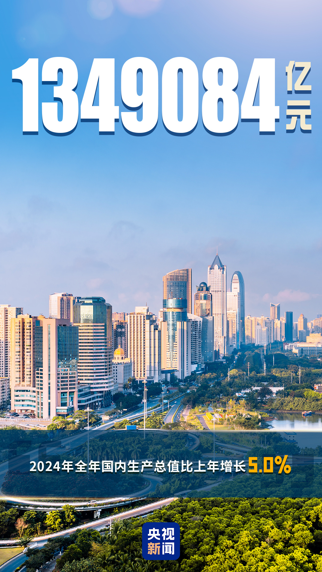 国家统计局:2024年全年国内生产总值1349084亿元,比上年增长5.0%。