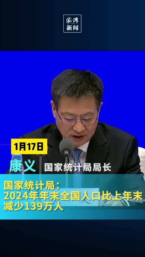 国家统计局:2024年年末全国人口比上年末减少139万人。