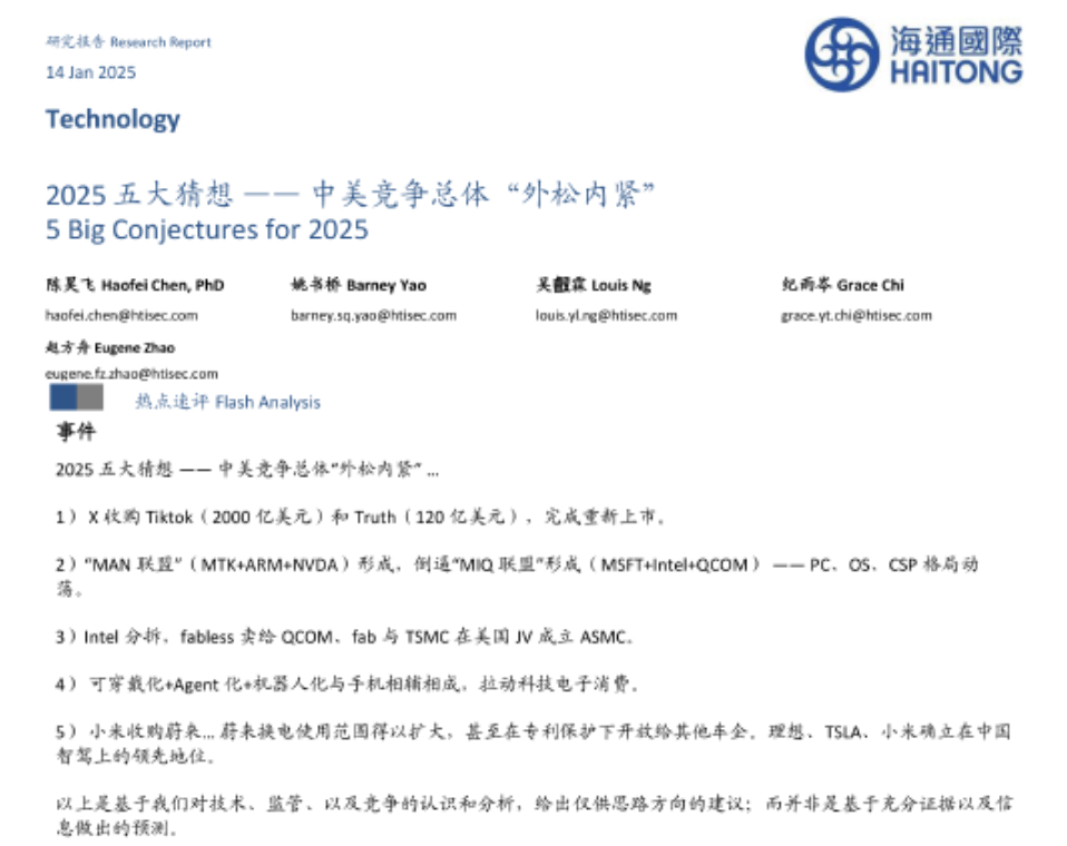 海通国际认为2025年小米将收购蔚来,双方暂无回应。