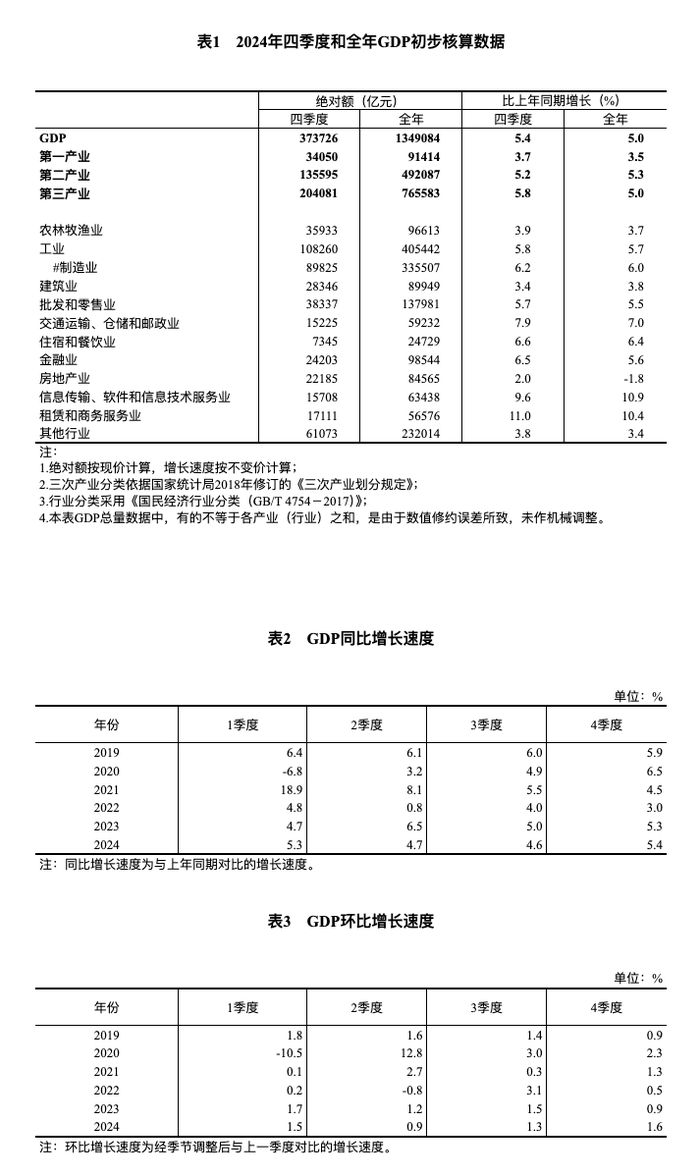 2024年四季度和全年国内生产总值初步核算结果公布。