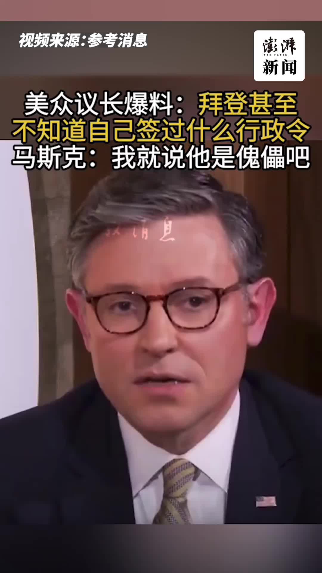 据澎湃新闻援引参考消息1月19日报道,美国国会众议院议长约翰逊爆料,在2024年和拜登的一次谈话中发现,他“甚至不知道自己签过什么行政令”。(via 澎湃新闻)