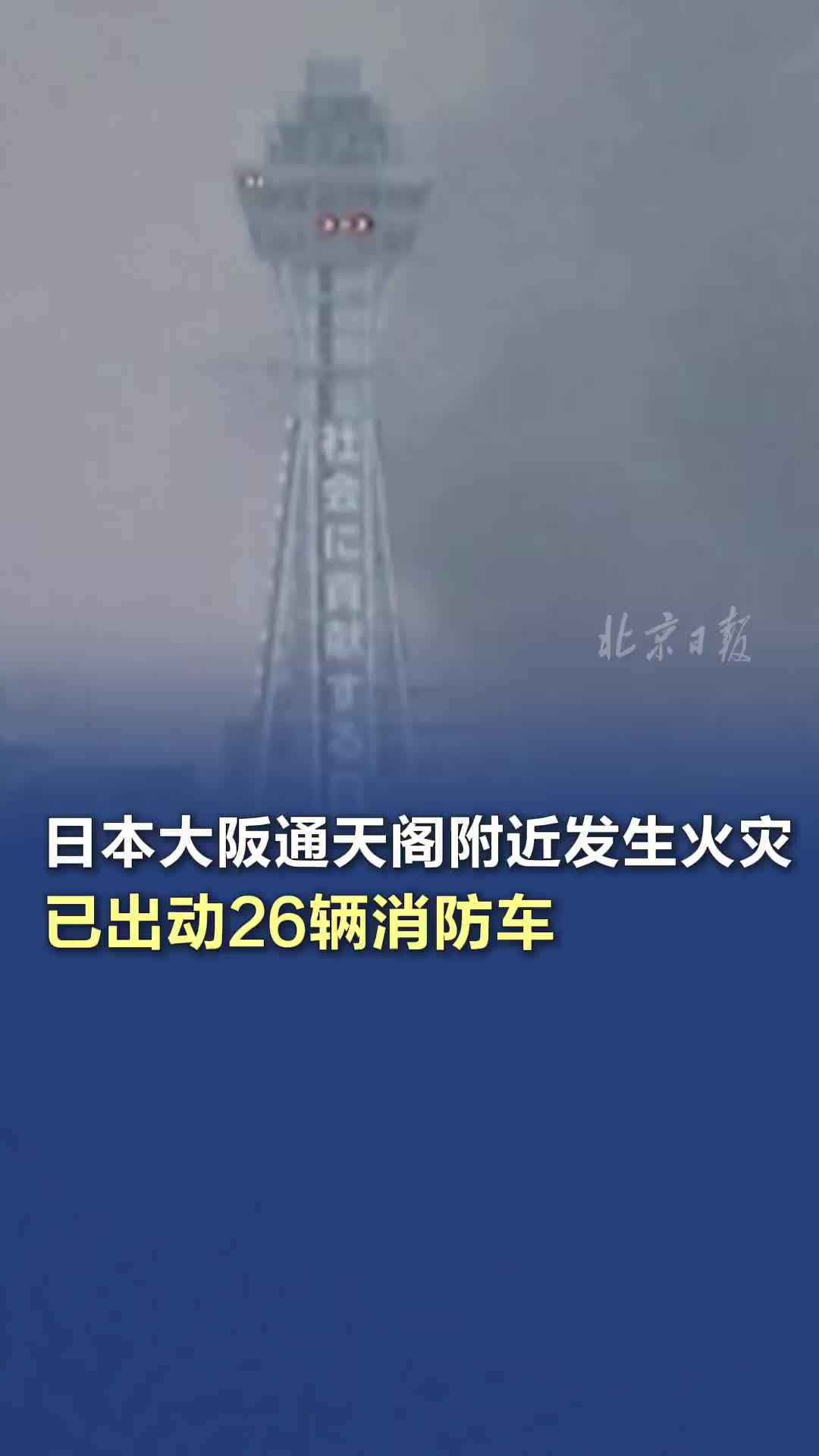 日本大阪通天阁附近发生火灾,已出动26辆消防车。