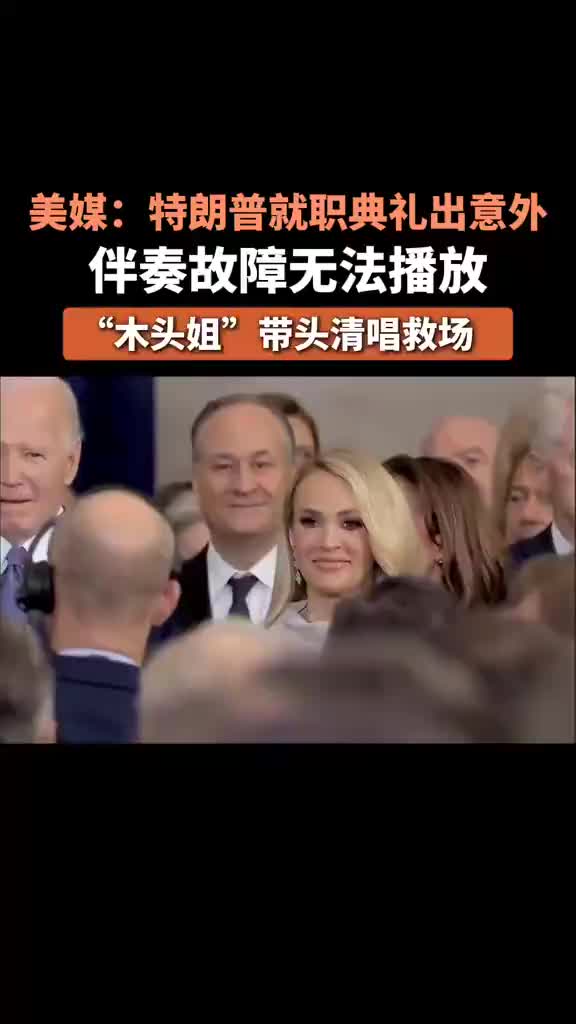 特朗普就职典礼出意外,伴奏故障无法播放,“木头姐”带头清唱救场。