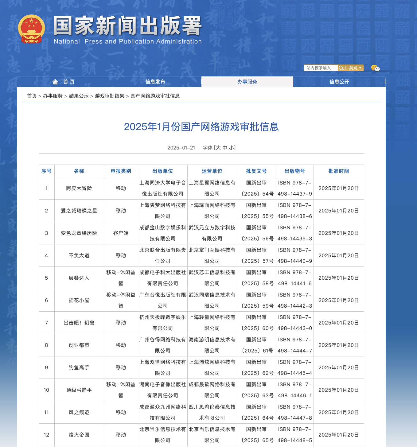 国家新闻出版署发布2025年国产网络游戏审批信息,1月共123款国产游戏获批。