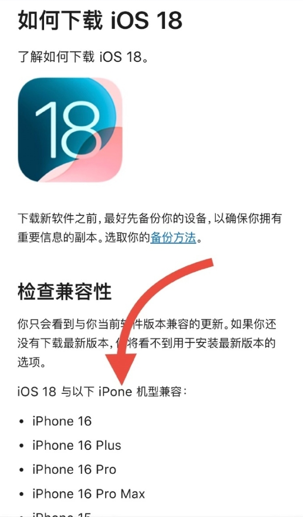 日前,有网友发现,苹果中国官网的“如何下载iOS 18”支持页面中出现错别字,在介绍机型兼容的部分,苹果将“iPhone”写成了“iPone”。