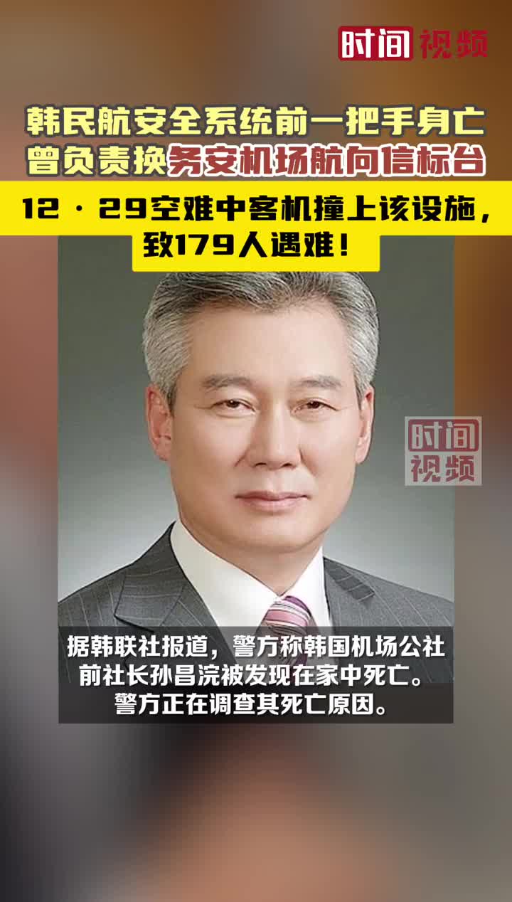 据韩联社报道,当地时间1月21日,韩国警方称韩国机场公社前社长孙昌浣被发现在京畿道家中死亡。警方正在调查其死亡原因。孙昌浣是2020年5月务安国际机场更换混凝土方位角设施(航向信标台)时的民航安全系统“一把手”。去年12月29日,济州航空一架客机在务安国际机场机腹着陆后撞上混凝土方位角设施后爆炸起火,致179人遇难。(via 时间视频)