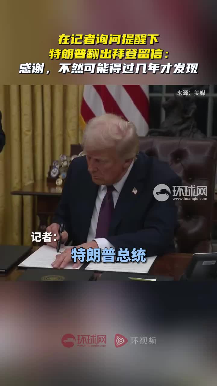 在记者询问提醒下,特朗普翻出拜登留信:感谢,不然可能得过几年才发现。