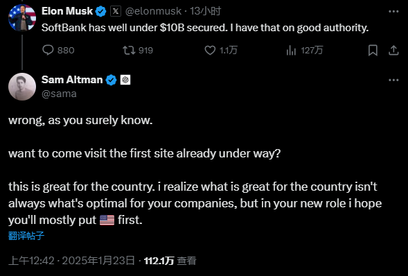 5000亿AI基建计划遭马斯克“拆台”,奥尔特曼罕见硬怼。