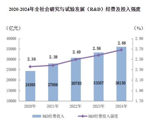 比上年增长8.3%,2024年我国研究与试验发展经费超过3.6万亿元。