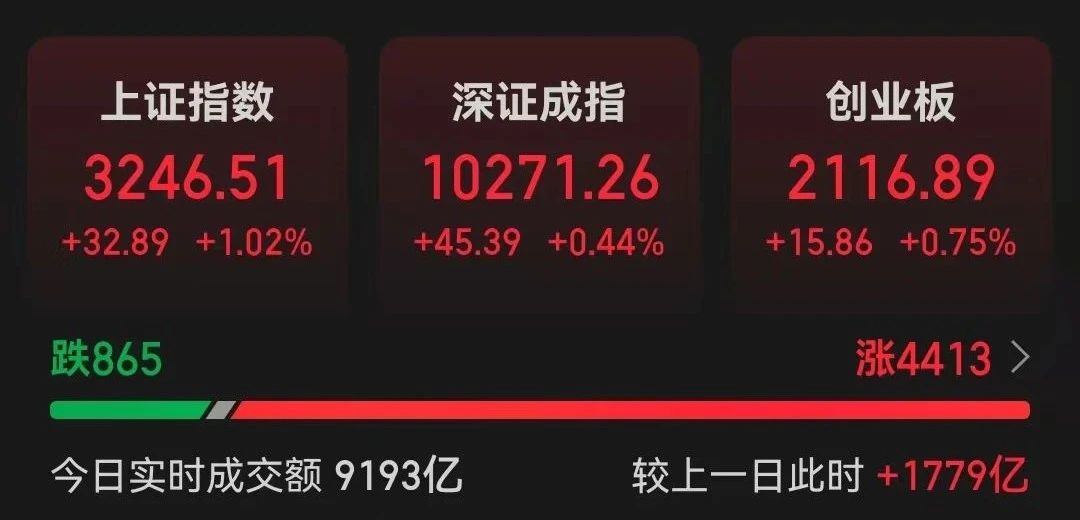 据中国证券报,A股上午三大股指齐涨,截至收盘,上证指数上涨1.02%,深证成指上涨0.44%,创业板指上涨0.75%。市场逾4400只个股上涨。
