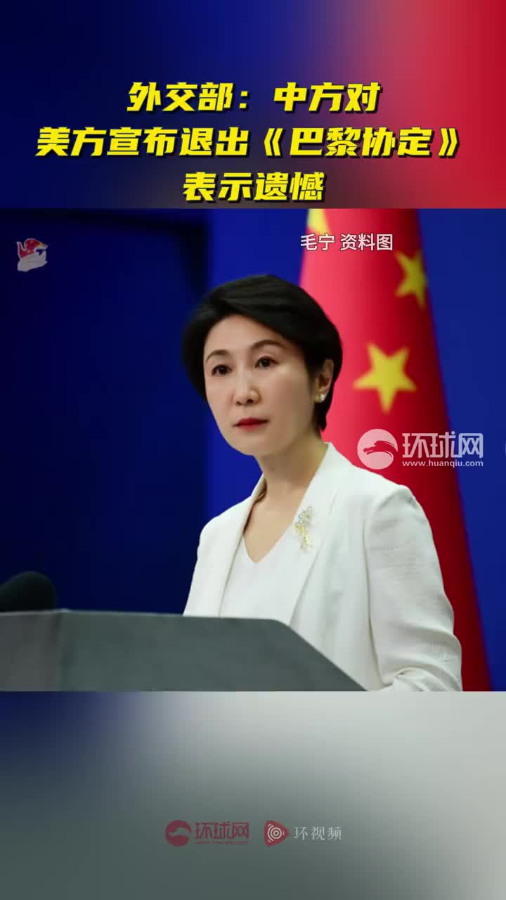 对此,外交部发言人毛宁表示,中方对美方宣布退出《巴黎协定》表示遗憾,气候变化是全人类面临的共同挑战,没有一个国家能够置身事外,也没有一个国家能够独善其身。正如丁薛祥副总理在世界经济论坛年会致辞中指出,应对气候变化要一以贯之,解决气候变化问题的根本之策在于绿色转型。中国正在全面加快绿色低碳转型,以实际行动争取在2030年前实现碳达峰,2060年前实现碳中和。中国已经建成全球最大最完整的新能源产业链,为世界提供70%的光伏组件和60%的风电设备。这些优质产能为世界绿色发展和应对气候变化提供了重要的助力。