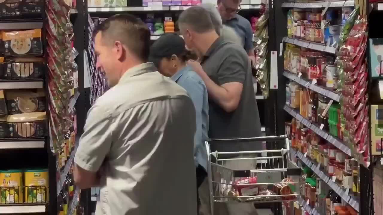 哈里斯与丈夫现身亚洲超市购物。