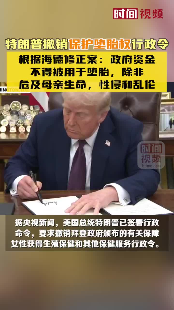特朗普撤销保护堕胎权行政令:结束强制使用联邦税收资金资助或推动自愿堕胎政策。