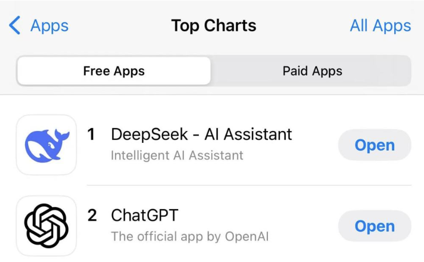 DeepSeek超越ChatGPT登顶美区苹果应用榜,雷军千万年薪挖角天才系来自DeepSeek。