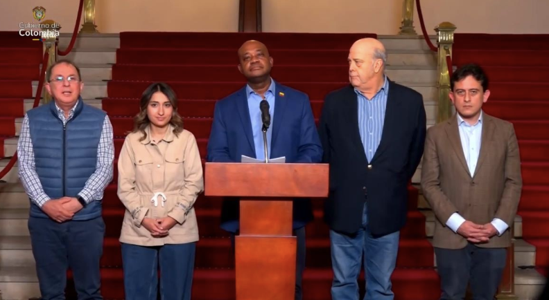 据央视新闻,当地时间1月26日晚,哥伦比亚政府总统府发布声明,哥外交部长穆里略 (中)进行发言。