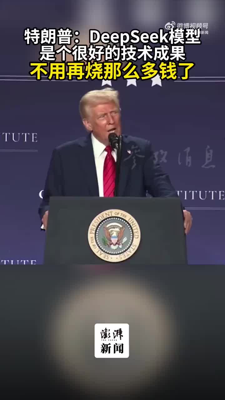 当地时间1月27日,美国总统特朗普表示,DeepSeek的出现是一件积极的事情,这是一项积极的技术成果,不用再烧很多钱了。(via 澎湃新闻)