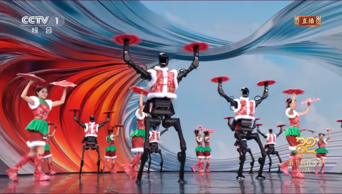 据新浪科技,今日,总台央视春晚舞台,杭州宇树科技又一次携旗下机器人登上春晚,其节目名为《秧Bot》,现场宇树科技人形机器人展示了极其灵巧的动作,并跳起了秧歌舞,丢起了手绢。值得注意的是,该节目导演为张艺谋,结合传统文化与机器人技术呈现创意融合舞蹈。