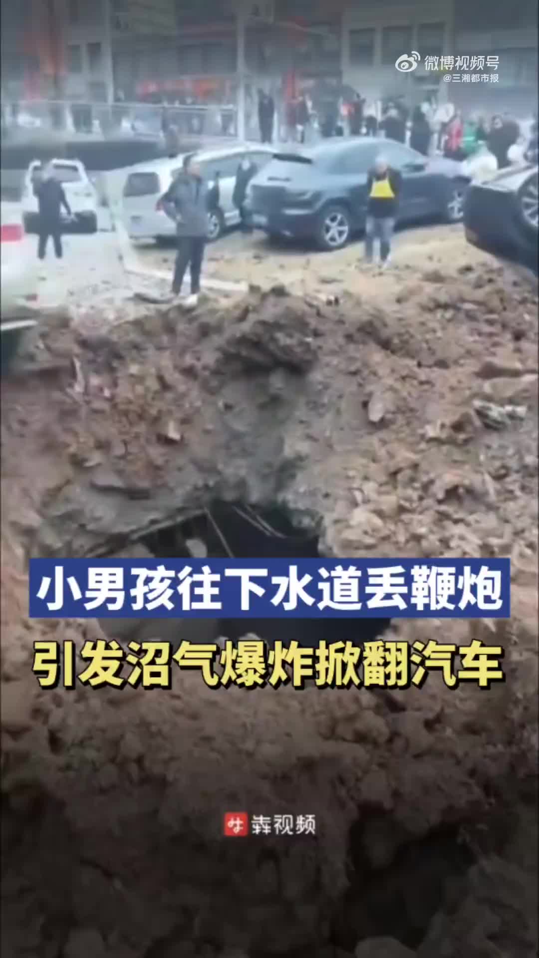 四川一男孩将鞭炮扔入化粪池,汽车整个掀翻!男孩和家长已被警察带走。