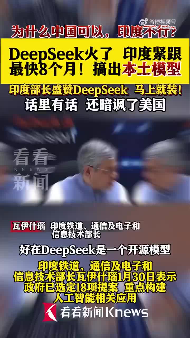 DeepSeek火了,印度称最快8个月搞出本土人工智能模型。