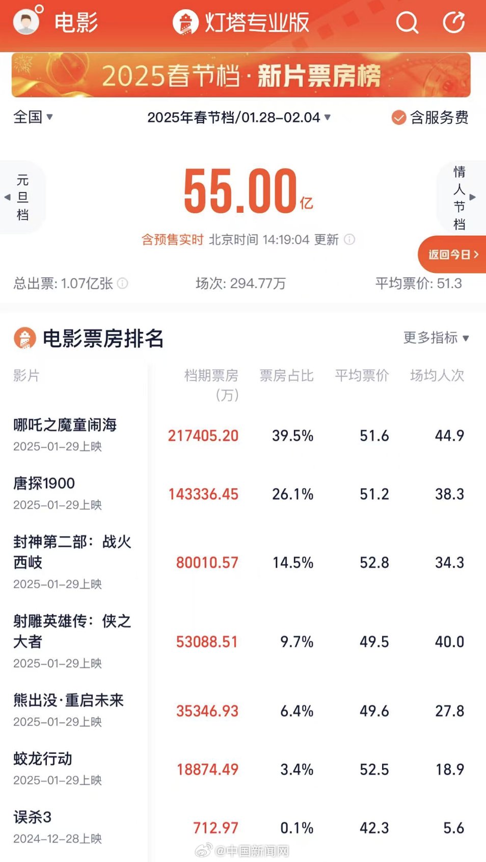 2025春节档总票房超55亿!