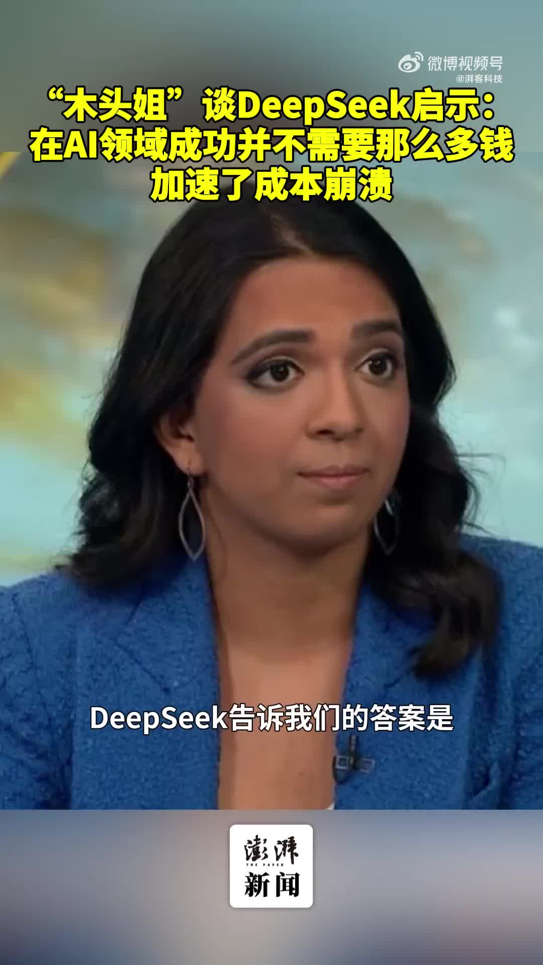 “木头姐”谈DeepSeek启示:AI领域成功并不需要那么多钱,加速了成本崩溃。