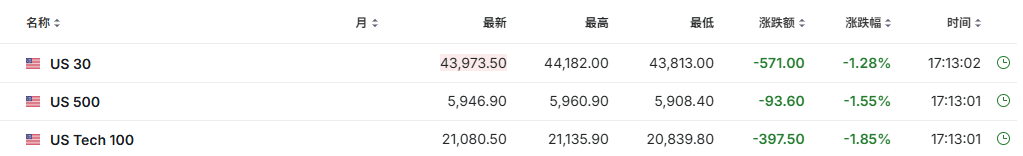 美股三大期指盘前跌超1%。截至发稿,道琼斯指数期货跌1.28%,标普500指数期货跌1.55%,纳斯达克100指数期货跌1.85%。