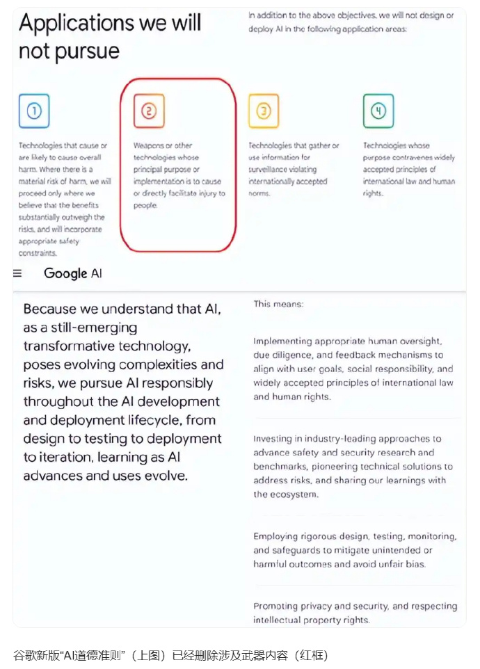美媒发现:谷歌取消不将AI用于武器研发承诺。