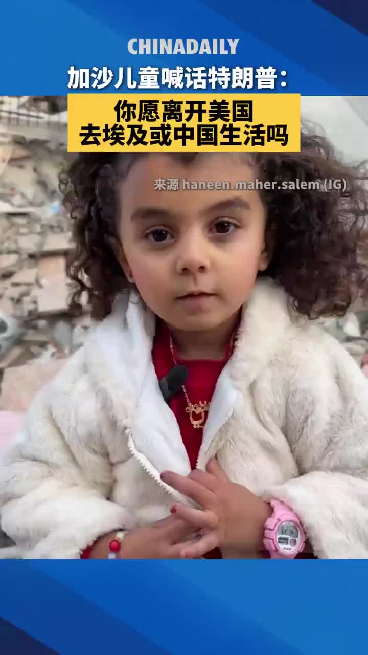 近日,一则加沙小女孩的视频在美国社交媒体上引发热议。视频中,她直接向美国总统特朗普发问:“如果我让你离开家园,去埃及或中国生活,你会接受吗?”她质疑美国推崇的“自由”,并强调:“你可以控制世界,但加沙除外,因为加沙属于全世界。”(via 中国日报)