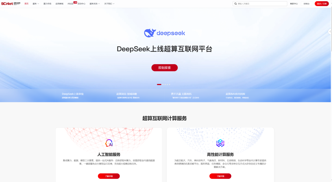 伴随DeepSeek系列模型上线国家超算互联网平台(www.scnet.cn),一个基于国产深算智能加速卡的普惠、可靠AI大模型时代正悄然降临。