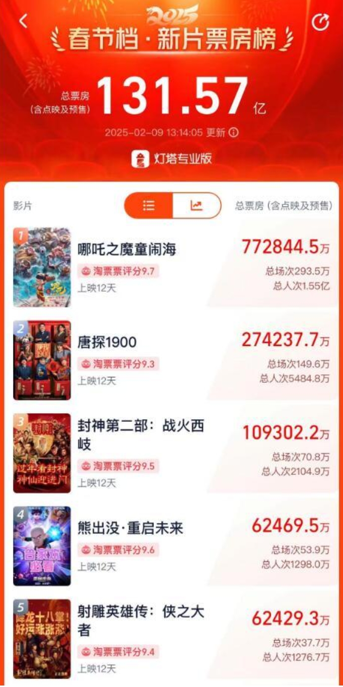 《熊出没》票房超过《射雕》 列春节档票房第四。