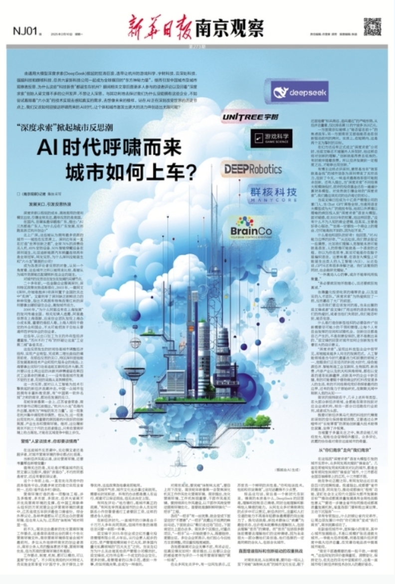 据澎湃,2月10日,江苏省委机关报《新华日报》刊发的《南京观察》记者集体采写的文章提及,由通用大模型深度求索(DeepSeek)掀起的狂涛巨浪,连带让杭州的游戏科学、宇树科技、云深处科技、强脑科技和群核科技,总共六家新科技公司一起成为全球瞩目的“东方神秘力量”。继而引发中国城市及城市观察者反思,为什么这些“科技新贵”都诞生在杭州?