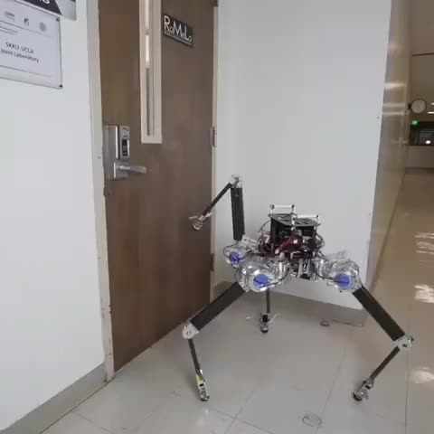 加州大学机器人实验室 研发的ALPHRED2机器人,具有增强动力学自主腿个人助理机器人,可以多模式移动,可用4腿,可用两腿,可跳,可跑,可滚,可用四肢拾取东西或按按钮。可以每秒1.5米的速度在崎岖不平的地形稳定行走。(via 工业科技迷)