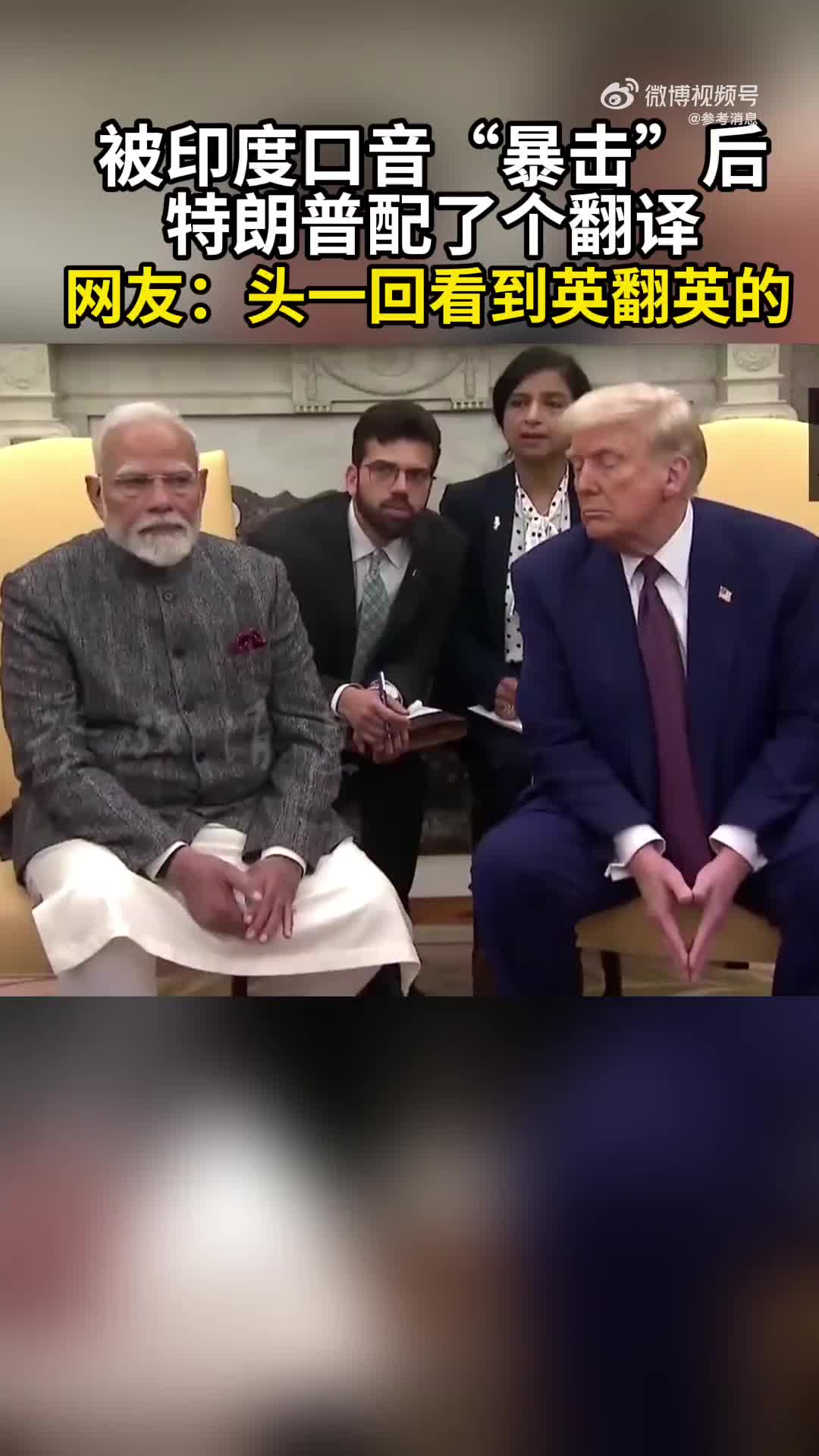 被印度口音“暴击”后,特朗普配了个翻译,网友:头一回看到英翻英的。
