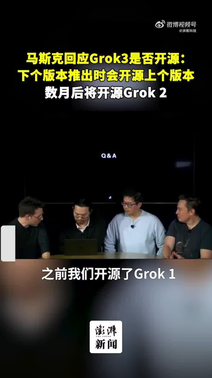 马斯克回应Grok3是否开源:下个版本推出时会开源上一代。